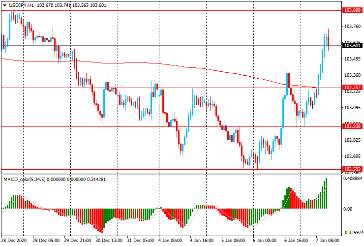 USD/JPY: пара резко выросла с Y102.95 до Y103.75, достигнув недельного максимума.