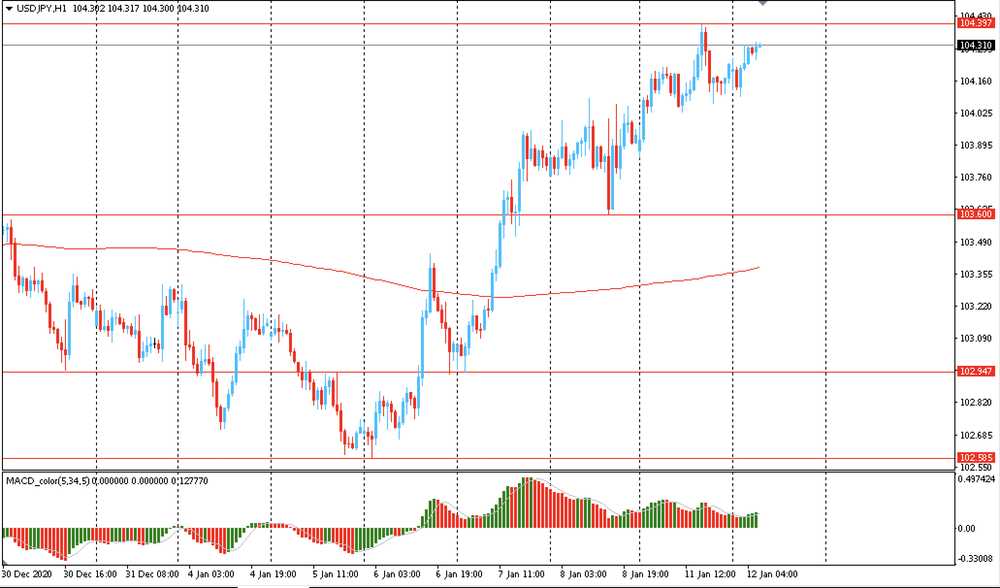 Вчера пара USD/JPY торговалась с повышением и закрыла день на положительной территории около цены Y104.20. Сегодня пара торговалась в узком диапазоне Y104.10-30, оставаясь вблизи 5-недельного максимума. На часовом графике USD/JPY все еще торгуется выше линии скользящей средней МА (200) Н1 (Y103.40). На четырехчасовом графике ситуация аналогичная. Исходя из вышесказанного, вероятно, стоит придерживаться северного направления в торговле и пока пара остается выше MA 200 H1, необходимо искать точки входа на покупку на формирование коррекции.