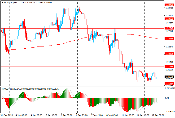 ЕUR/USD: пара торгуется в диапазоне $1.2140-80, после снижения вчера до трехнедельного минимума с $1.2130.