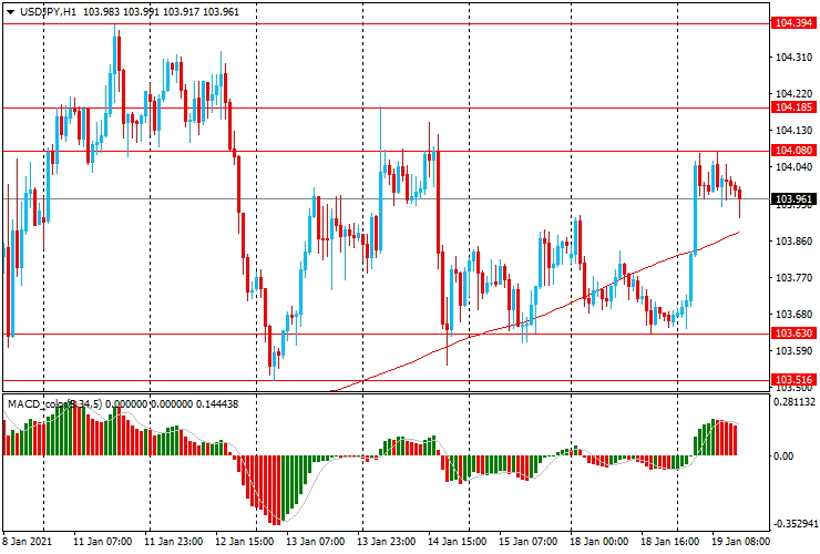 USD/JPY: пара выросла с Y103.65 до Y104.10 и тестирует линию скользящей средней МА (200) Н1 (Y103,90).