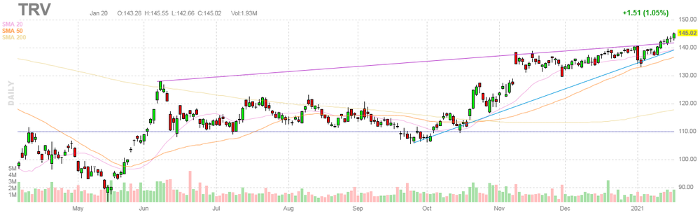 Акции TRV на премаркете выросли до уровня $148.12 (+2.14%).