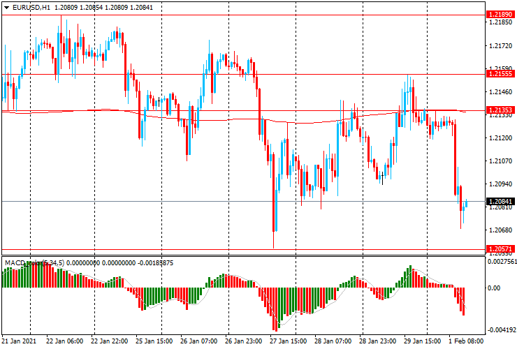 ЕUR/USD: пара резко снизилась с $1.2135 до $1.2070, но на момент написания статьи немного выросла к $1.2085.