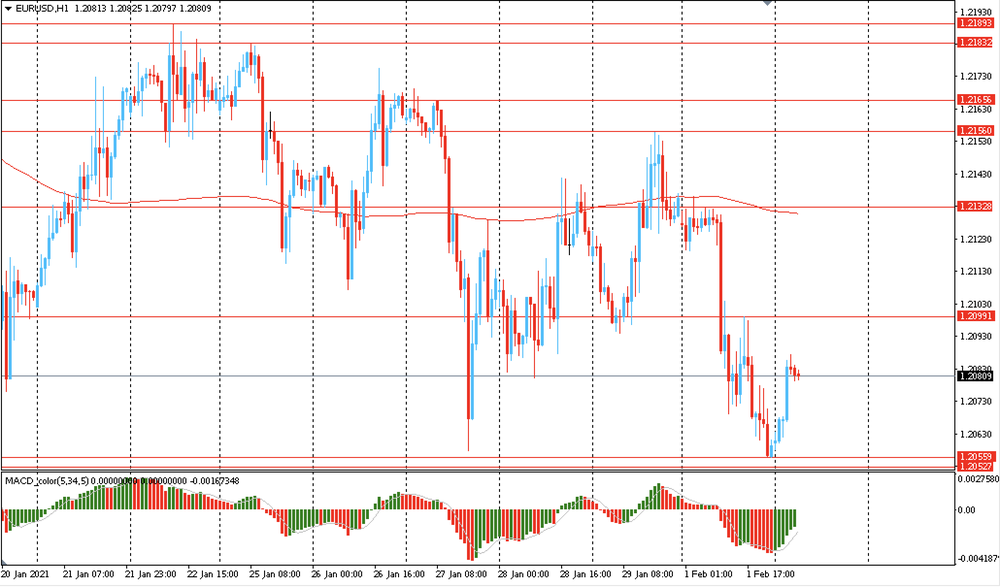 Вчера единая валюта обесценилась и упала к 2.5-недельному минимуму после того, как в декабре объем розничных продаж в Германии упал больше, чем прогнозировали экономисты. При этом стоит отметить, что Европа продолжает бороться с развертыванием вакцин в регионе.