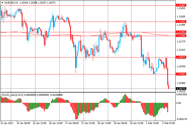 ЕUR/USD: пара резко снизилась с $1.2090 до $1.2025, достигнув двухмесячного минимума.