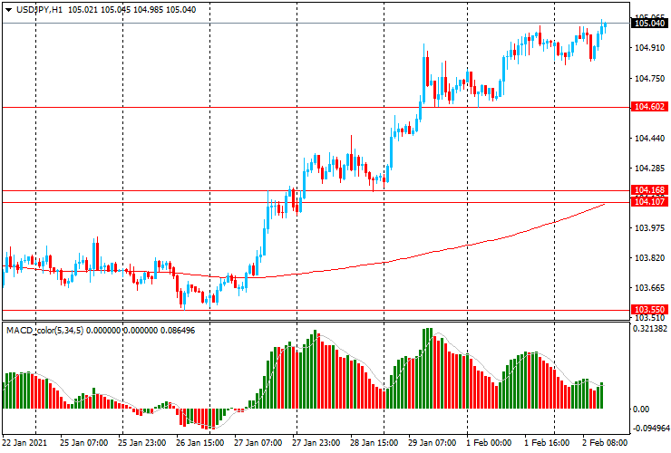 USD/JPY: пара торгуется в основном с ростом в диапазоне Y104.80-105.05 - около максимумов середины ноября.