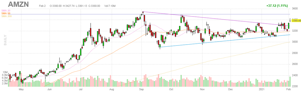 Акции AMZN на премаркете выросли до уровня $3395.05 (+0.45%).