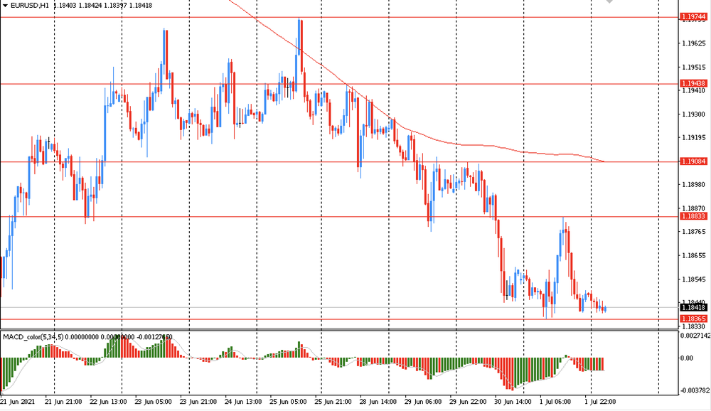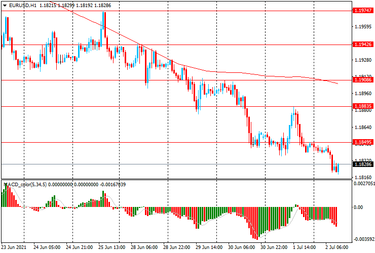 ЕUR/USD: пара торгуется в основном со снижением с $1.1850 до $1.1820, достигнув нового, почти трехмесячного минимума.