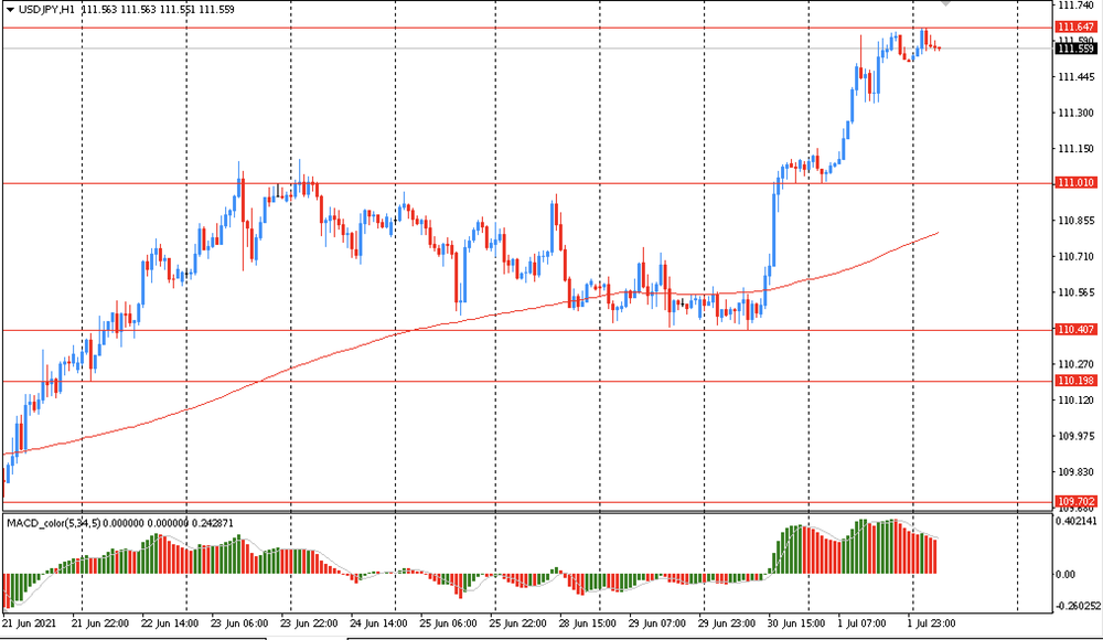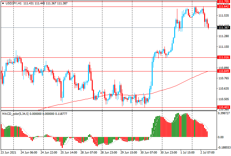 USD/JPY: пара немного снизилась с Y111.65 до Y111.40, но остается около максимумов конца марта 2020 года.