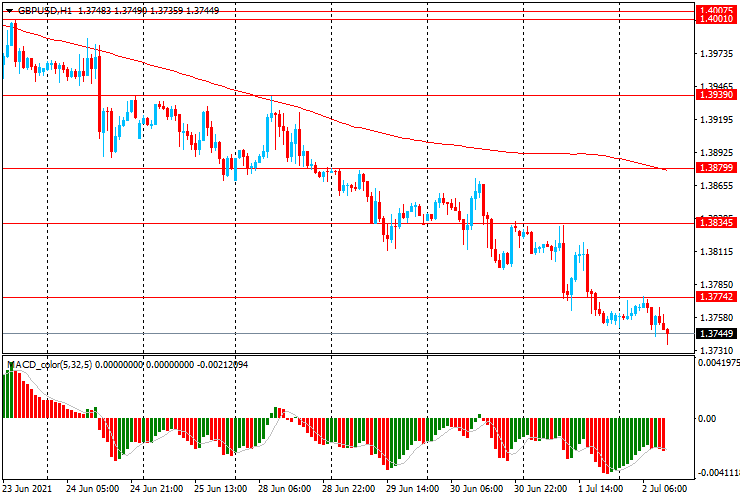 GBP/USD: пара торгуется в основном со снижением с $1.3775 до $1.3735 - около десятинедельного минимума.