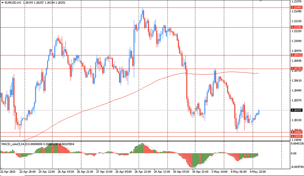 Между тем, отчет Института управления поставками показал, что темпы роста сектора услуг в США неожиданно замедлились в апреле. ISM сообщило, что индекс деловой активности в сфере услуг снизился до 62,7 в апреле после скачка до рекордного максимума в 63,7 в марте. Значение выше 50 по-прежнему указывает на рост в секторе услуг, но экономисты ожидали, что индекс вырастет до 64,3. Неожиданное падение основного индекса частично отразило замедление темпов роста активности, поскольку индекс активности упал до 62,7 в апреле с 69,4 в марте. Рост новых заказов также замедлился в течение месяца: индекс новых заказов упал до 63,2 в апреле с 67,2 в марте. С другой стороны, по данным ISM, индекс занятости вырос до 58,8 в апреле с 57,2 в марте, достигнув самого высокого уровня с сентября 2018 года. Индекс цен также вырос - до 76,8 в апреле с 74,0 в марте, что указывает на самые высокие темпы роста цен с июля 2008 года.