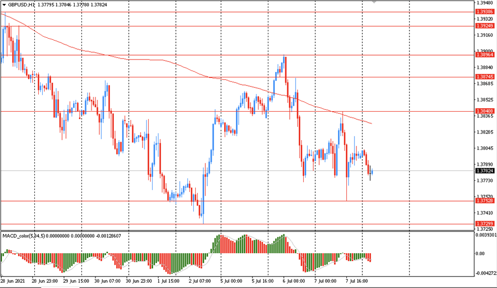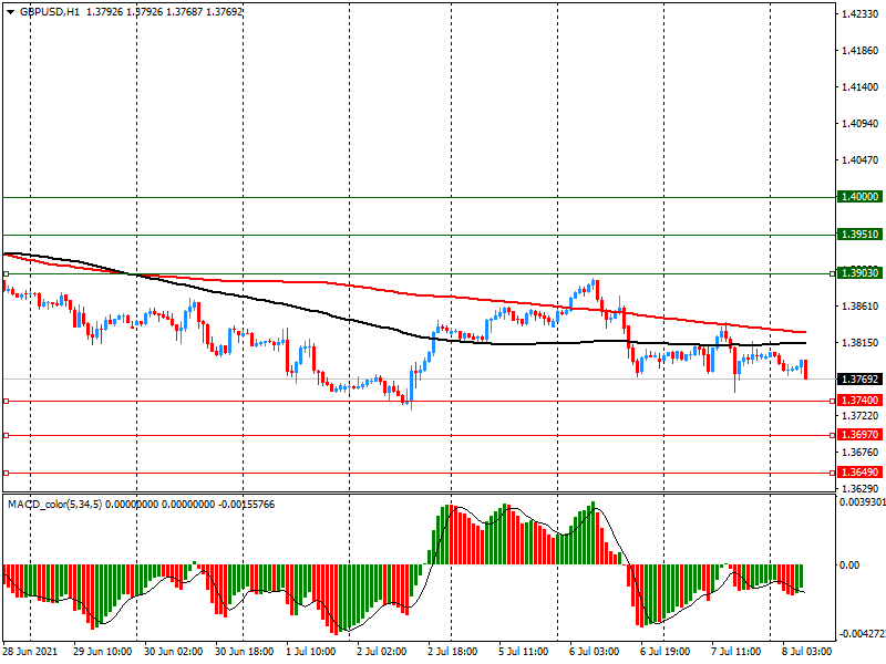 Вчера пара GBP/USD торговалась разнонаправлено в диапазоне $1.3750-$1.3840 и закрыла день без существенных изменений. Сегодня пара немного упала, опустившись к отметке $1.3775. На часовом графике GBP/USD все еще торгуется ниже линии скользящей средней МА (200) Н1 ($1.3830). На четырехчасовом графике ситуация аналогичная. Исходя из вышесказанного, вероятно, стоит придерживаться южного направления в торговле и пока пара остается ниже MA 200 H1, необходимо искать точки входа на продажу на формирование коррекции.