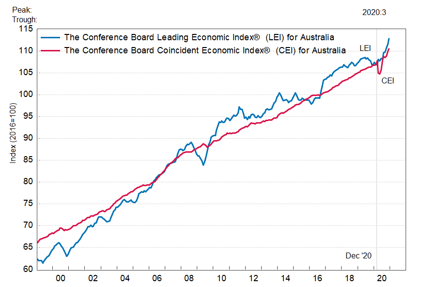 Результаты исследований, опубликованные Conference Board, показали: по итогам декабря ведущий экономический индекс (LEI) для Австралии вырос на 1,1 процента, и составил 112,8 пункта (2016=100).