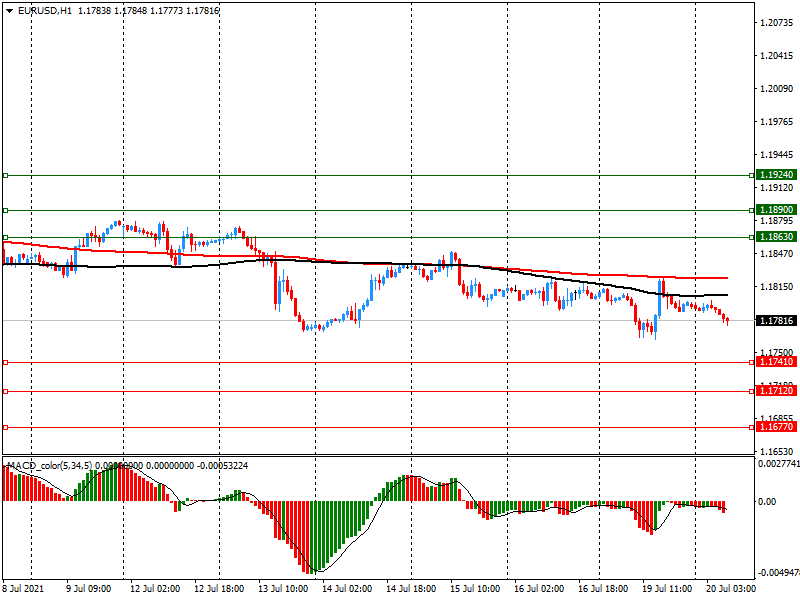 Вчера пара EUR/USD торговалась разнонаправлено в диапазоне $1.1765-$1.1825 и закрыла день без существенных изменений. Сегодня пара также торговалась в узком диапазоне $1.1790-00, оставаясь вблизи вчерашней цены закрытия. На часовом графике EUR/USD все еще торгуется ниже линии скользящей средней МА (200) Н1 ($1.1820). На четырехчасовом графике ситуация аналогичная. Исходя из вышесказанного, вероятно, стоит придерживаться южного направления в торговле и пока пара остается ниже MA 200 H1, необходимо искать точки входа на продажу на формирование коррекции.