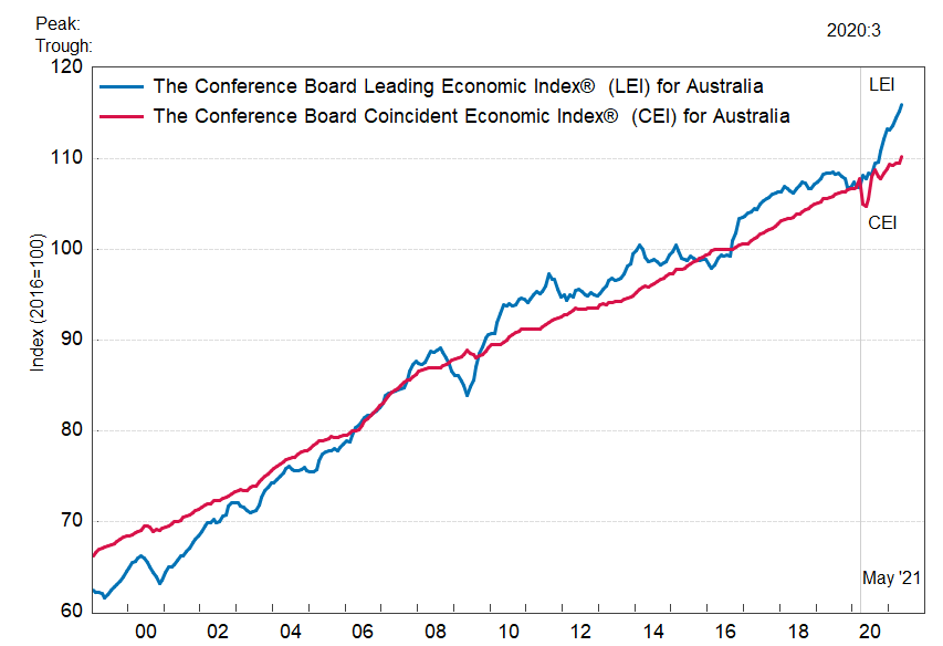 Результаты исследований, опубликованные Conference Board, показали: по итогам мая ведущий экономический индекс (LEI) для Австралии вырос на 0,6 процента, и составил 115,9 пункта (2016=100).