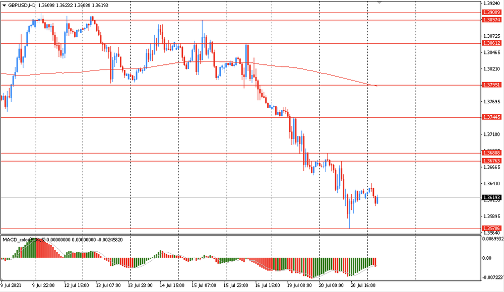 Фунт также находился под давлением, поскольку количество новых случаев COVID-19 в Англии стремительно растет, в то время как страна с понедельника сняла большинство социальных ограничений, полагая, что вакцинирование населения предотвратить переполнение больниц.