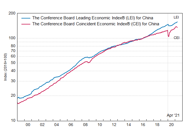 Результаты исследований, опубликованные Conference Board, показали: по итогам апреля ведущий экономический индекс (LEI) для Китая вырос на 1,2 процента, и составил 158,0 пункта (2016=100).
