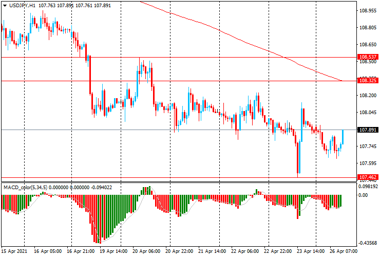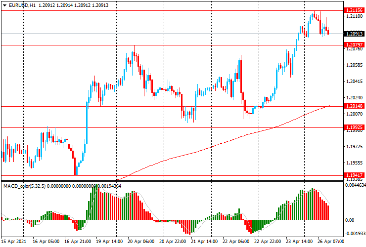 В 14:00 GMT США представят индикатор потребительской уверенности за апрель. Индикатор является попыткой измерить оптимизм потребителей. Основан на данных опроса около 5000 домохозяйств. Опрос включает в себя широкий круг вопросов, включая оценку финансового состояния собственного семейного хозяйства, оценку общей экономической ситуации в стране в прошлом и мнение о будущем, приемлемость совершения больших покупок в настоящий момент. Проводится как анализ текущей ситуации, так и ожиданий. Ожидается, что индикатор вырос до 112,1 с 109,7 в марте.