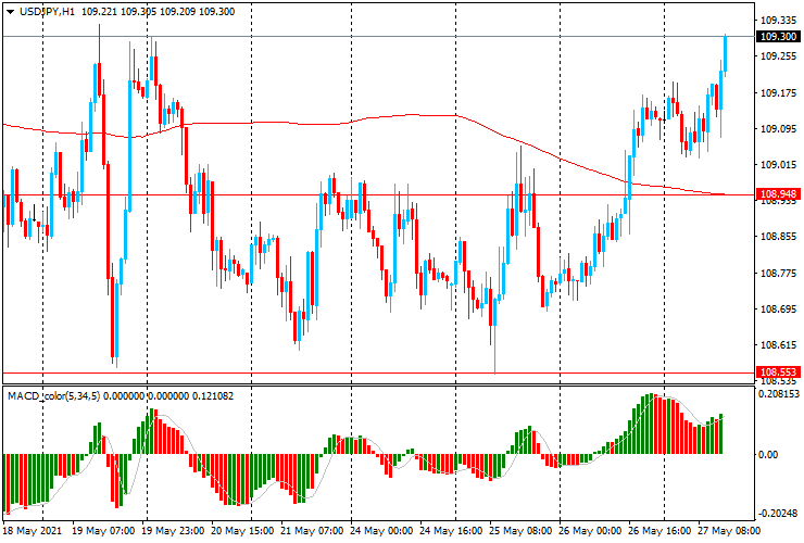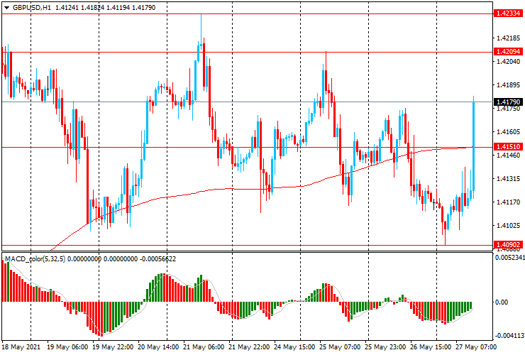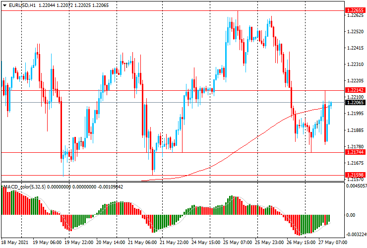Участники рынков с особым внимаем ожидают публикацию пятничных данных по основным потребительским ценам в США и результатов опрос менеджеров по закупкам. Большинство экономистов ожидают, что в апреле цены на подскочат на 2,9% в годовом исчислении по сравнению с ростом на 1,8% месяцем ранее. Напомним, что последние опасения по поводу резкого роста инфляции были вызваны публикацией данных в середине мая, которые показали, что апрельский индекс потребительских цен в США составил 4,2% в годовом исчислении, значительно превысив прогнозы в 3,6%. Сегодня же в 12:30 по Гринвичу будут опубликованы данные по ВВП США, а также первичные заявки на пособие по безработице, где прогнозируется небольшое снижение.