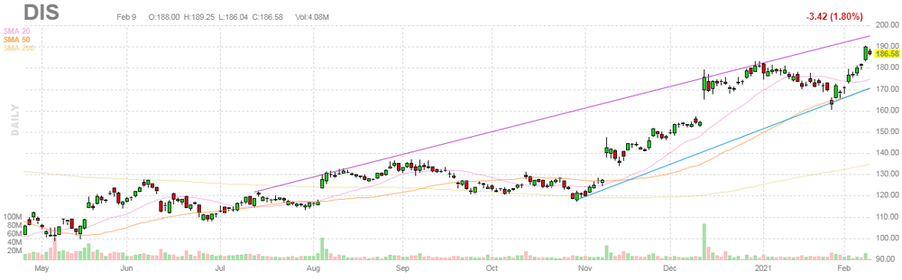 На текущий момент акции DIS котируются по $186.58 (-1.80%).