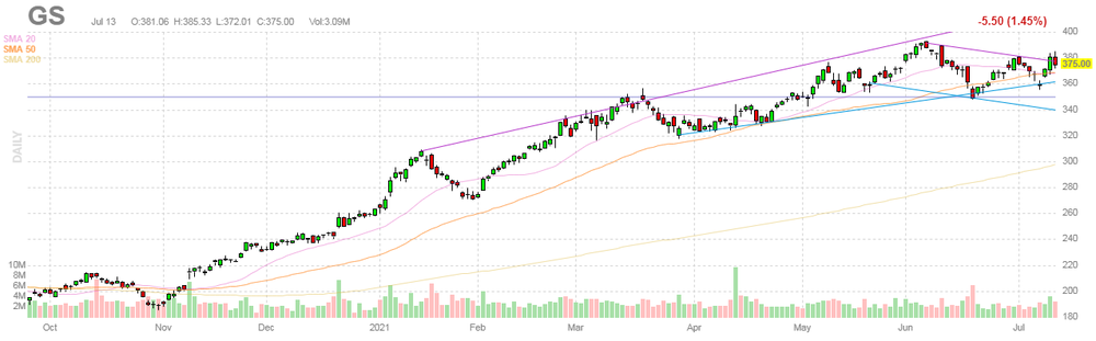 На текущий момент акции GS котируются по $375.00 (-1.45%).