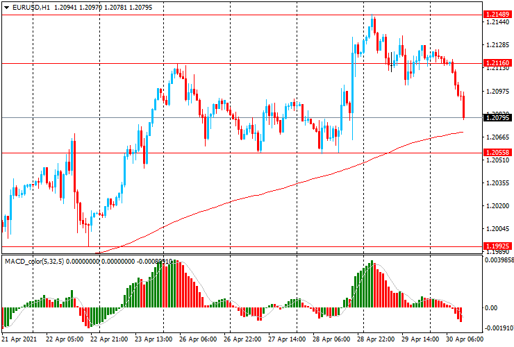 Данные, свидетельствующие о росте потребительских расходов в США на 4,2% в марте на фоне роста доходов на 21,1%, поскольку домохозяйства получили дополнительные деньги от правительства в связи с COVID-19, поддержали доллар. Это привело к росту индекса основных расходов на личное потребление (PCE) на 0,4% по сравнению с ростом на 0,3% в предыдущем месяце.