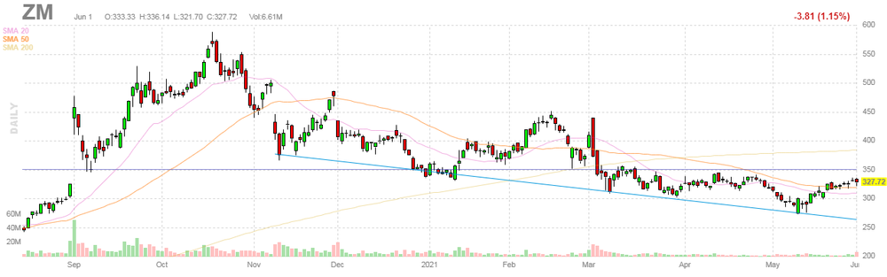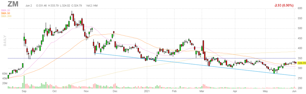 На текущий момент акции ZM котируются по $324.79 (-0.90%).
