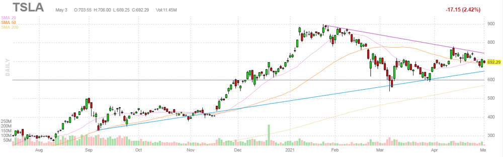 Tesla Motors, Inc., NASDAQ | TSLA | 704 | -5.44(-0.77%) | 304495 |