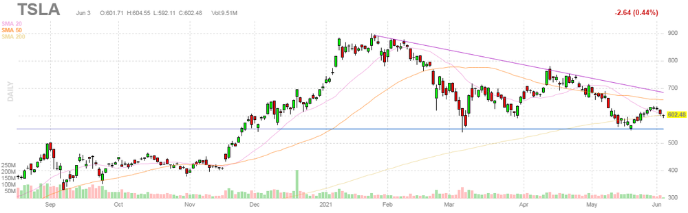 Tesla Motors, Inc., NASDAQ | TSLA | 594.8 | -10.32(-1.71%) | 554234 |