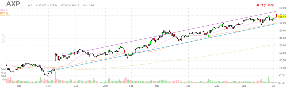На текущий момент акции AXP котируются по $168.18 (-0.19%).