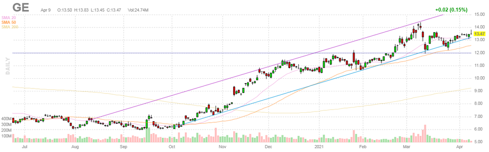 На текущий момент акции GE котируются по $13.47 (+0.15%).