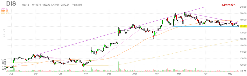 На текущий момент акции DIS котируются по $179.87 (-0.99%).