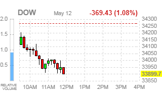 Основные фондовые индексы США снижаются, так как беспокойства по поводу возможного ужесточения политики ФРС усилились после публикации инфляционных данных, которые показали, что в апреле потребительские цены выросли намного больше, чем ожидалось.