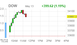 Почти все компоненты DOW в плюсе (29 из 30). Исключение - Chevron Corp. (CVX; -0.20%). Лидер роста - JPMorgan Chase & Co. (JPM; +2.30%).