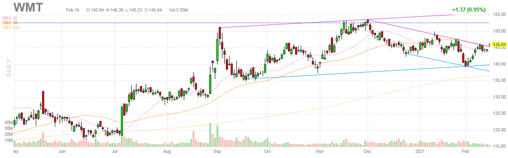 На текущий момент акции WMT котируются по $145.84 (+0.95%).