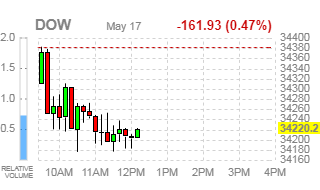 Большинство компонентов DOW в минусе (17 из 30). Аутсайдер - The Walt Disney Co. (DIS; -2.54%). Лидер роста - Merck & Co. Inc. (MRK; +1.94%).