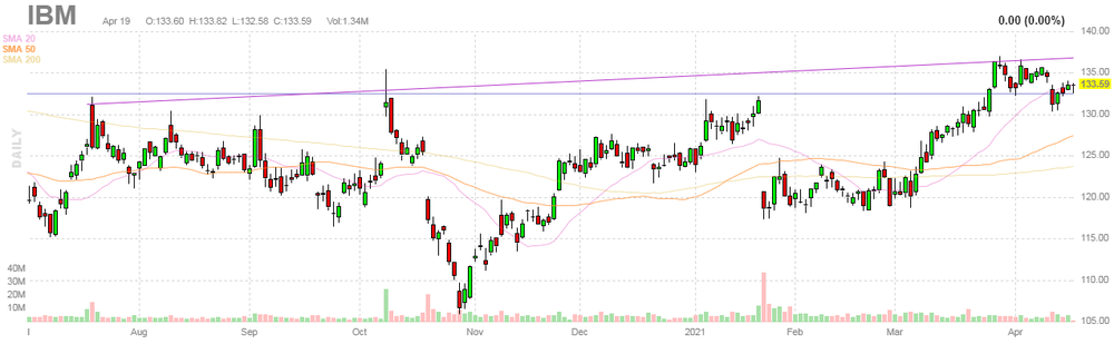 На текущий момент акции IBM котируются по $133.59 (0.00%).