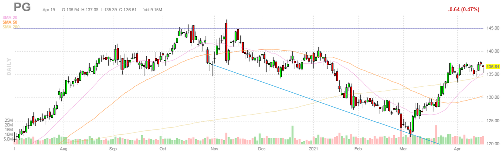 Акции PG на премаркете выросли до уровня $136.70 (+0.07%).