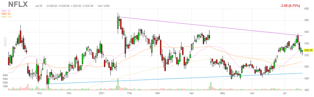 На текущий момент акции NFLX котируются по $528.30 (-0.75%).