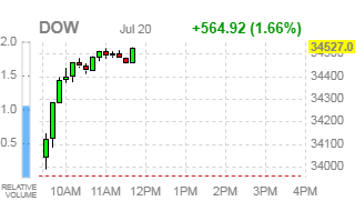 Основные фондовые индексы США демонстрируют солидный рост, так как рынок акций отскочил вверх после широкомасштабной распродажи на предыдущей сессии, спровоцированной опасениями, что быстрое распространение дельта-варианта коронавируса в мире может привести к замедлению восстановления глобальной экономики.
