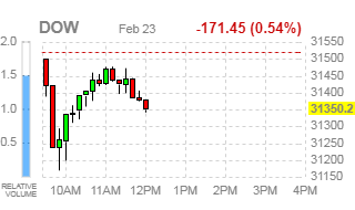 Большинство компонентов DOW в минусе (19 из 30). Аутсайдер - The Home Depot Inc. (HD; -4.57%). Лидер роста - The Walt Disney Co. (DIS; +2.37%).