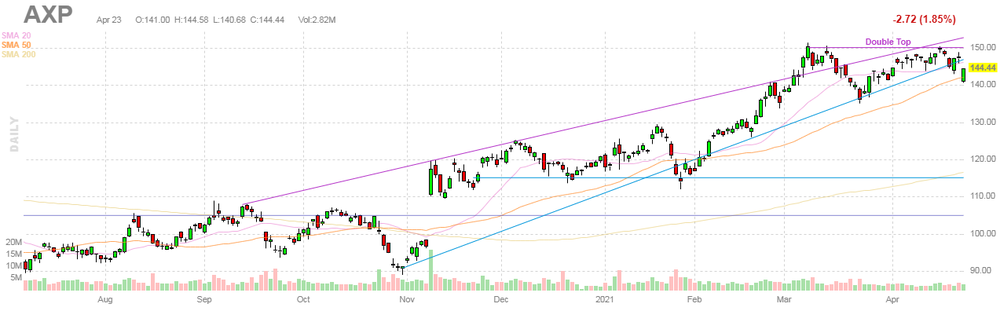 На текущий момент акции AXP котируются по $144.44 (-1.85%).