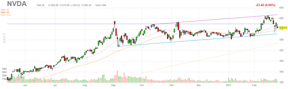 На текущий момент акции NVDA котируются по $556.54 (-4.04%).