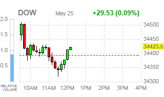 Большинство компонентов DOW в минусе (19 из 30). Аутсайдер - Amgen Inc. (AMGN; -2.09%). Лидер роста - The Walt Disney Company (DIS; +1.27%).