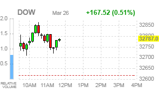Большинство компонентов DOW в плюсе (23 из 30). Лидер роста - NIKE Inc. (NKE; +2.17%). Аутсайдер - Apple Inc. (AAPL; -0.74%).
