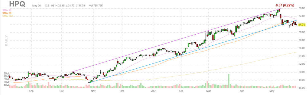 На текущий момент акции HPQ котируются по $31.79 (-0.22%).