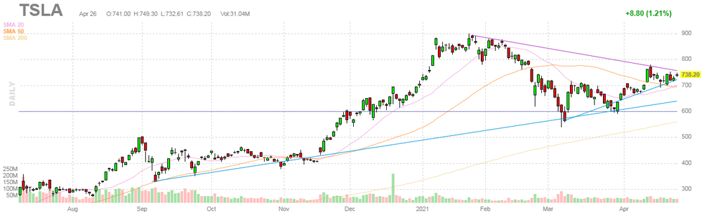 Tesla Motors, Inc., NASDAQ | TSLA | 720.98 | -17.22(-2.33%) | 643028 |