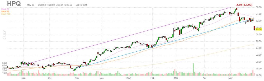 На текущий момент акции HPQ котируются по $29.50 (-8.12%).