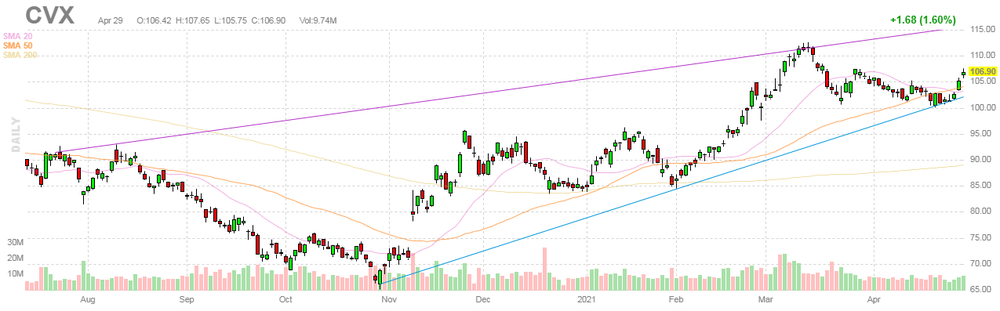 Согласно обнародованному отчету, прибыль компании Chevron (CVX) по итогам первого квартала 2021 финансового года (ФГ) достигла $0.90 в расчете на одну акцию (против $1.93 на одну акцию в первом квартале 2020 ФГ), что оказалось выше среднего прогноза аналитиков на уровне $0.85 на одну акцию.