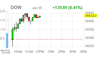 Основные фондовые индексы США преимущественно повышаются, так как спрос на акции стоимости возобновился после публикации данных ADP, показавших более сильный, чем ожидалось, рост числа занятых в частном секторе США в июне. Однако, дальнейший рост рынка акций ограничивают опасения, что карантинные ограничения, направленные на сдерживание распространения дельта-варианта коронавируса, окажут негативное влияние на экономический рост, особенно в Азии и Европе. Влияние на ситуацию на рынке также оказывает ребалансировка инвестпортфелей в конце месяца/квартала.
